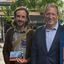 a woman wearing a pink hat is talking to another woman and saying there 's the door .