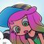 ALT: a doll with a choker around her neck is sitting on a chair