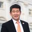 ALT: a panda bear is sitting under a tree with flowers in the background